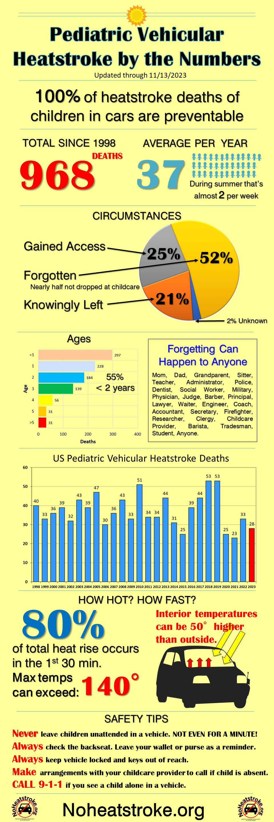 968 pediatric vehicular heatstroke deaths for a