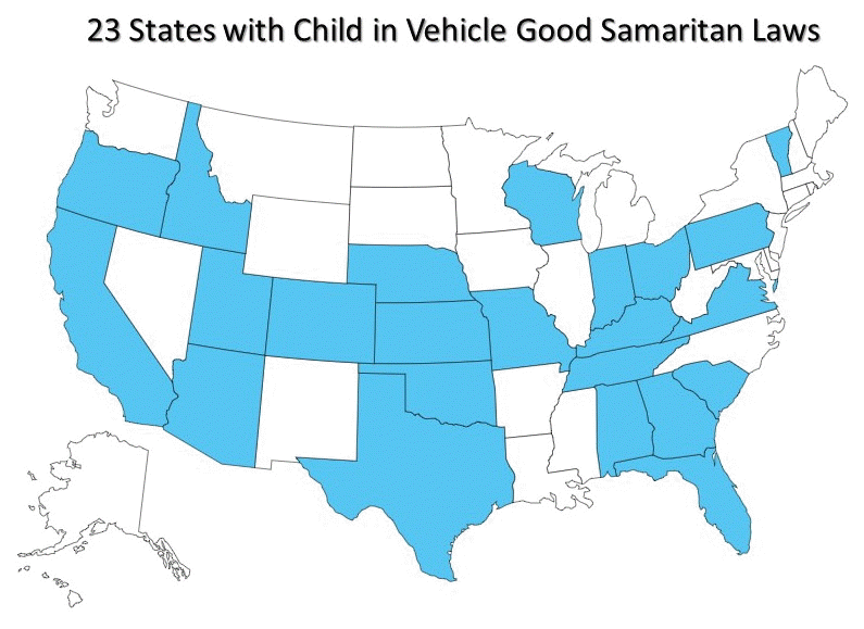 In recent years, 23 states have written laws that specifically add language offering at least some protection to persons who enter a vehicle, even by breaking a window, to "rescue" a child. It should be noted that there may be additonal limitations such as requirement to call 911 first. This list below was last updated in February 2022.